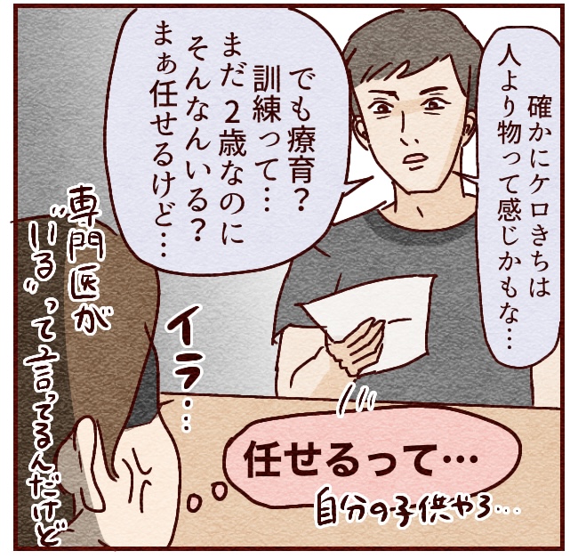 というわけで夫は今も自閉症スペクトラムについてふんわりとしか理解しておらず、ケロきちに関しては療育でさっぱり直ったと思っているのです。