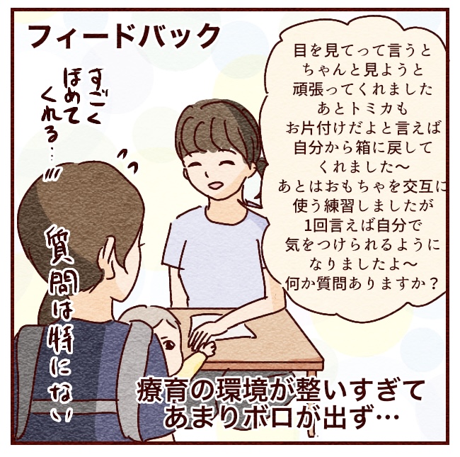こだわりの対象であるトミカを利用できたこと、元々真面目で言われたらやる性格っていうのが療育のシステムに合ってたのかな。