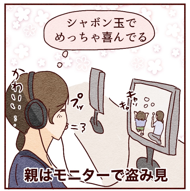 療育中の様子は別室のモニターで見られるのですが、