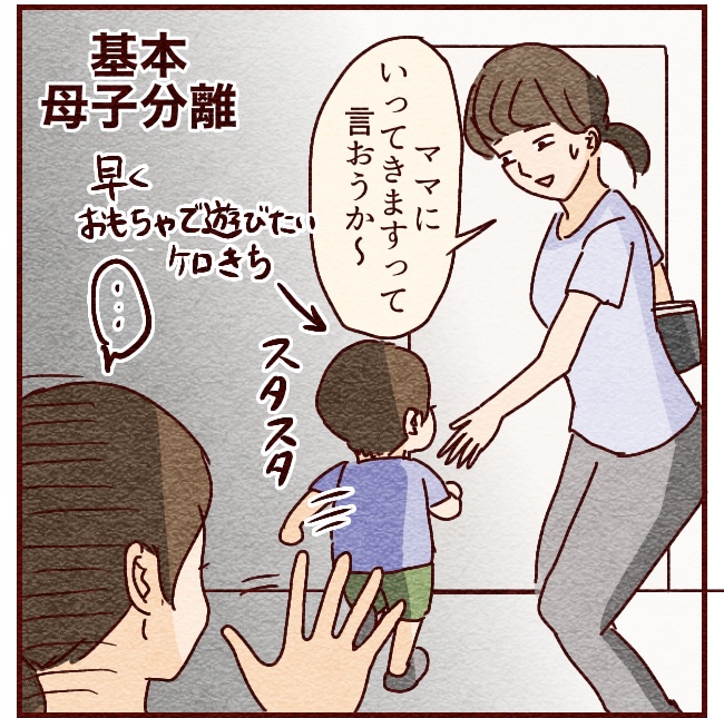 母子分離でしたが全く泣かずそそくさと教室に入ってしまう始末。