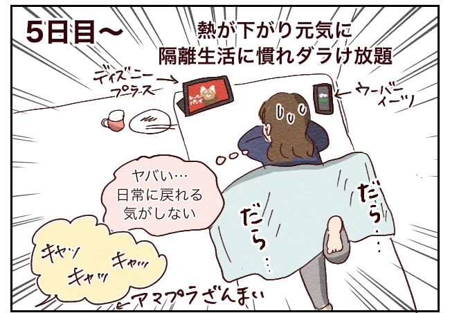 熱でしんどかったけど、鎮痛剤飲めば家事も何とかできる程度だったし、咳も喘息よりは全然マシでした。