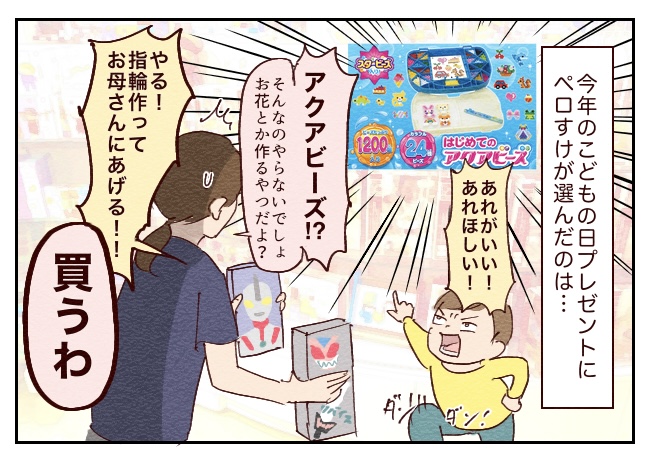 アクアビーズなんて男児にはハマらんやろと思ってましたが、細かい作業が好きなのかな?