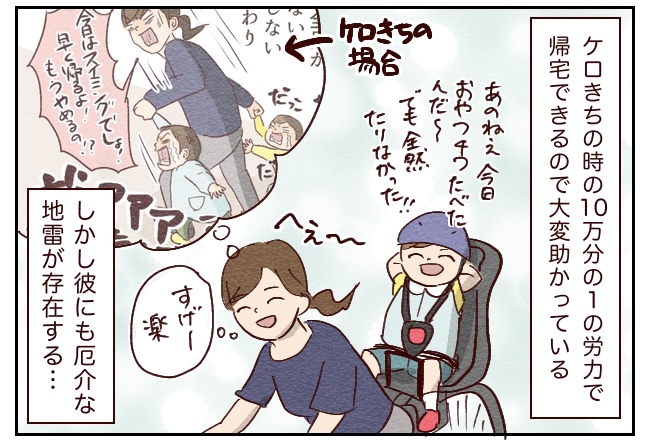 ケロきちの帰りしぶりで大変だった時は、こんな子周りにいない!と思って私一人苦労しているように思ってたけど、もしかして誰にでもなんらかの地雷があって、みんな苦労しているんじゃないか?と思ったり。