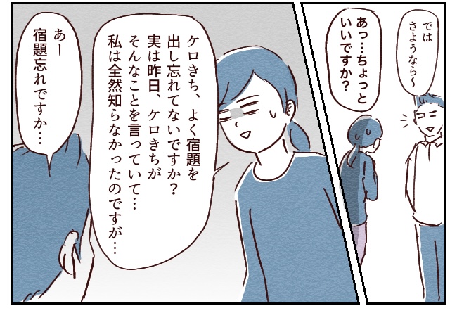 それでランドセルの奥に挟まったプリントをケロきちが探し出せるわけもなく…