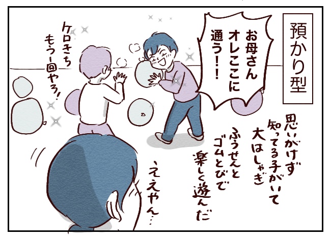学年は違うけど知ってる子がいて上手に遊べたこともあり、ケロきちは「もうここにする!」の勢い。