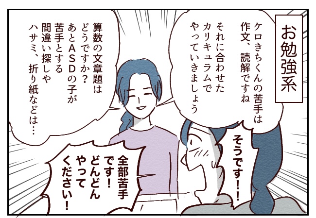 だってもうケロきちの苦手ドンピシャで対応してくれるって言うんだもん…