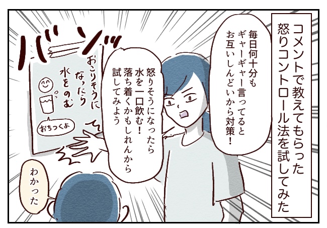 それで、怒りそうになったら水を飲むってとこまでは決められたんだけど、実際怒る場面になかなか水を用意できず😅