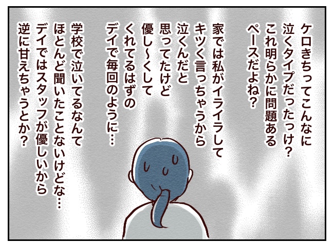 学校やデイの行き渋りもないし、〇〇が嫌だとかも言わないし、幼稚園や小学校でも泣く頻度に関しては言われたことない‥。