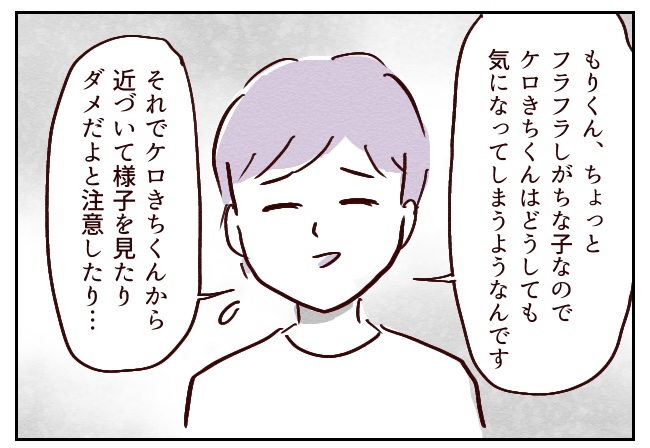 そんなわけなくない?と思いつつ、もし本当ならケロきちの動きや言動が変だからからかいの対象になってるんじゃ…とかいろいろ心配して迎えた次の日。