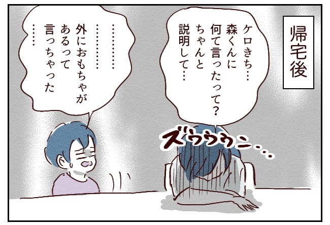 (追記:「外におもちゃがあるよ」といったことで、ケロきちはもりくんに死んでほしいと思っているはず、酷いとコメントがあったのですが、「外」はフェイクで実際は校内のとある場所です。死んでほしいとまでは考えていないです)