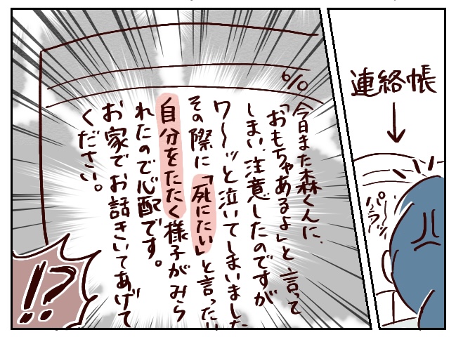 ちなみに「死にたい」発言や自分を叩く行為は今まで自宅でのみでした。