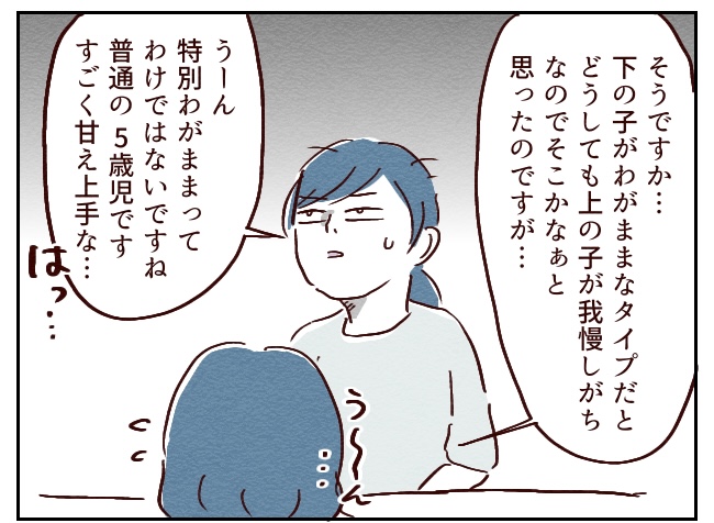 「そんなことないよ☺️」って言ってほしいんだなとうっすらわかりつつも「なんでそんなこと言うの?」のイラっとが先行してしまう…。(そして余計泣く→さらにイライラ)