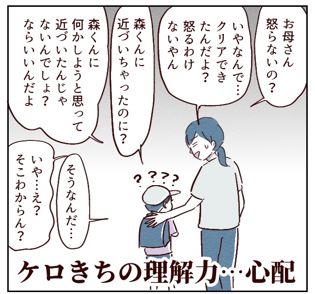 でも何回も「森くんに何かをしようと思って近づくのはダメ、そうでないならいい」と言ってるんだけど、なぜか「何があっても近づかない」に変換されるんだよなぁ。