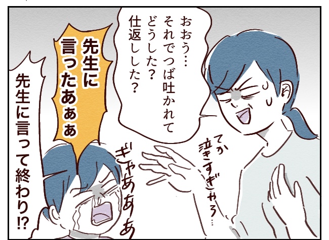 でも真のゴールは「何かをされても仕返しせず先生に言って終わりにできる」(欲を言えば泣かずに落ち着いて)です。