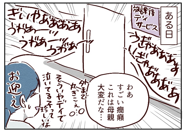 (デイにお迎え行くと外に聞こえるほどのギャン泣き)
