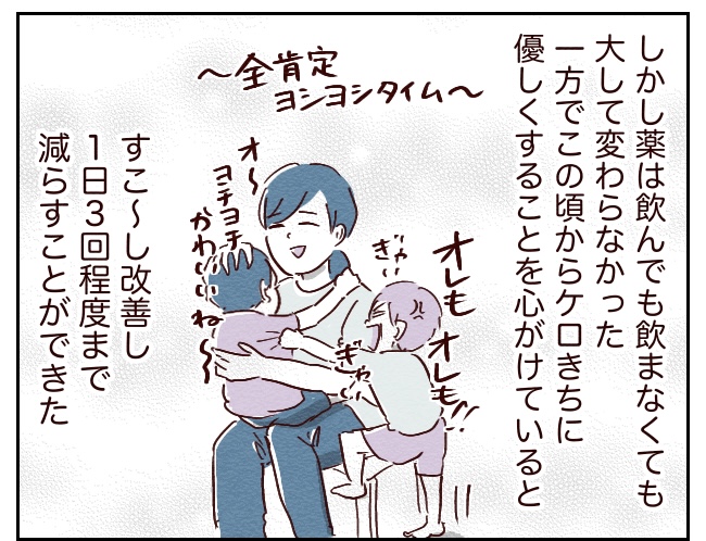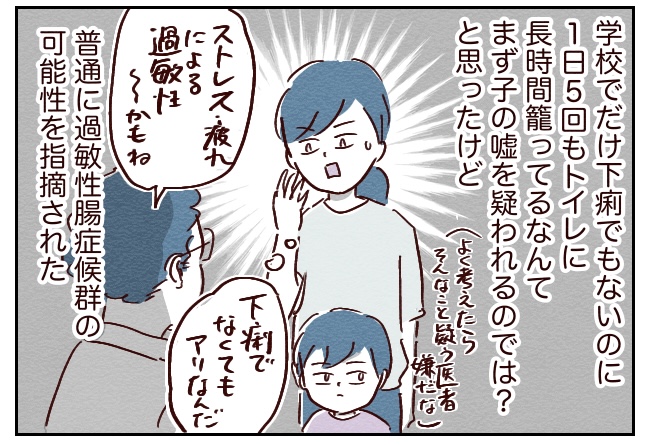 しかし優しく接し始めて森くん問題が落ち着き、ギャン泣き問題が落ち着いてきた頃にも、学校での腹痛はなくならずトイレの回数も3回以下にはなりませんでした。