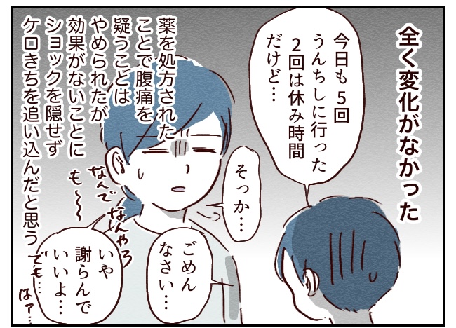 ケロきちの会話力が低いのもあるかもしれないけどお腹痛い明確な理由がわからず、本人にもわからず、家では問題なし…