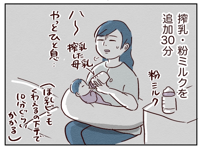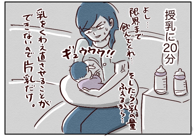 まさか授乳に1時間半(咥えるまでに1時間+飲むのに30分)かかるなんて😇
