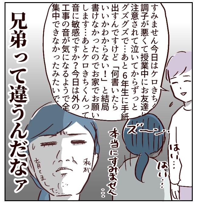 長男は家で頑張るタイプ、次男は外で頑張るタイプ…同じように育ててもこんなにはっきりと違うんだぁ…と衝撃です。