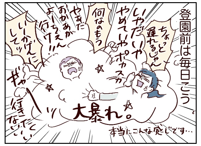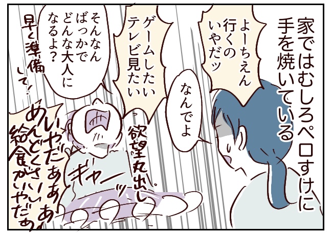 ちなみにケロきちは少しの注意で「お母さんごめんなさいごめんなさい泣」となるガラスのハートですが、一方の次男は「っせぇなぁおかぁは!このお尻デッカ!」と舐め腐ってくるタイプ。