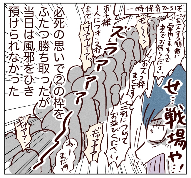 当時はフルの仕事復帰でも保育園は第14希望まで全て落ちて待機してた(私のことです)ぐらいだったので、リフレッシュ目的で預けようなんて贅沢なんだ…この戦場に毎月参戦するか、仕事に復帰するか、病気になるか、それ相応の苦労を背負わないと子供を預けてはいけないんだ…と無理に自分を納得させていましたが、