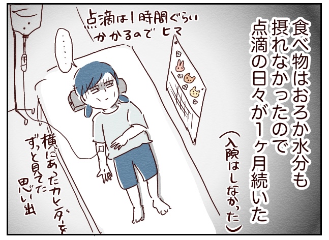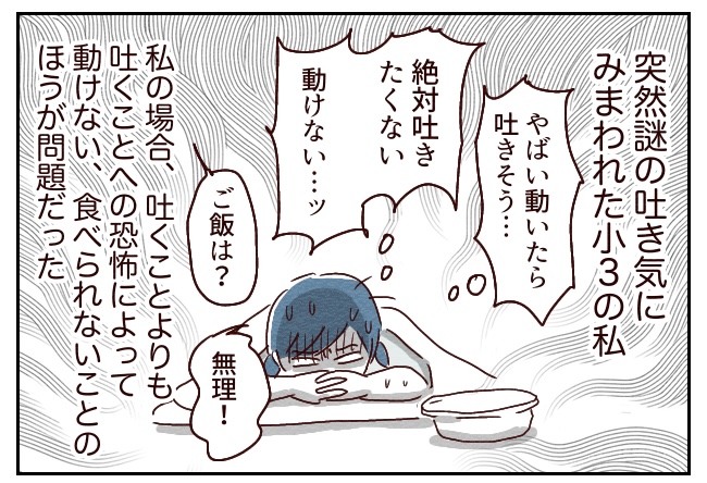 だから食中毒のような強い吐き気じゃないけど、乗り物酔いで吐く寸前みたいな状態がずーっと続いてて本当に辛かった…