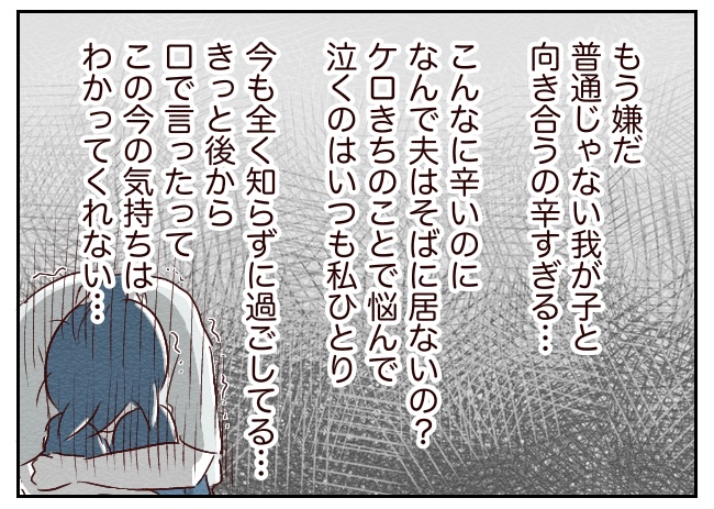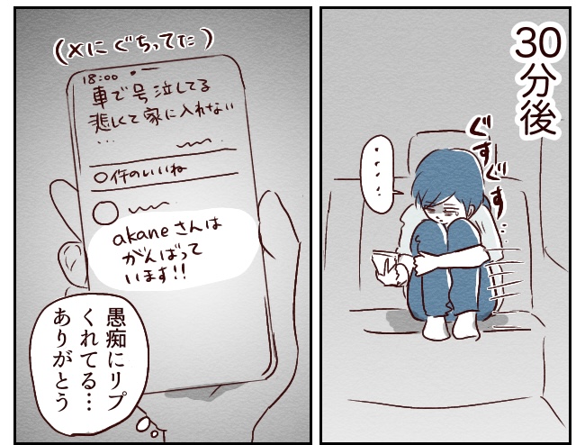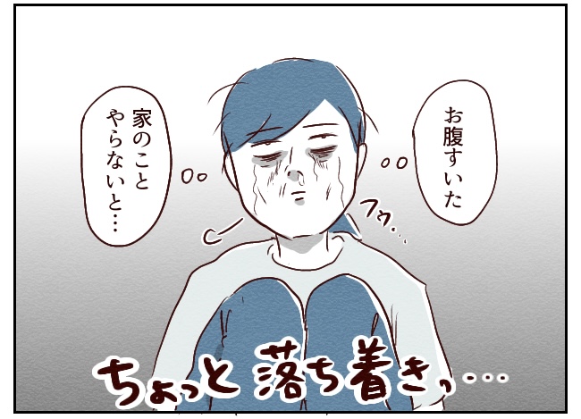 当たり前なんですが、ものすごく辛くて泣いて、泣いたことで出た脳内麻薬でなんとか過ごせるようなボロボロの状態でも、現実の顔は漫画のように青とか黒にはならず肌色のままだし、lll←こんな影もつかないし、状態異常マーク☠️とかつかないんですよね。
