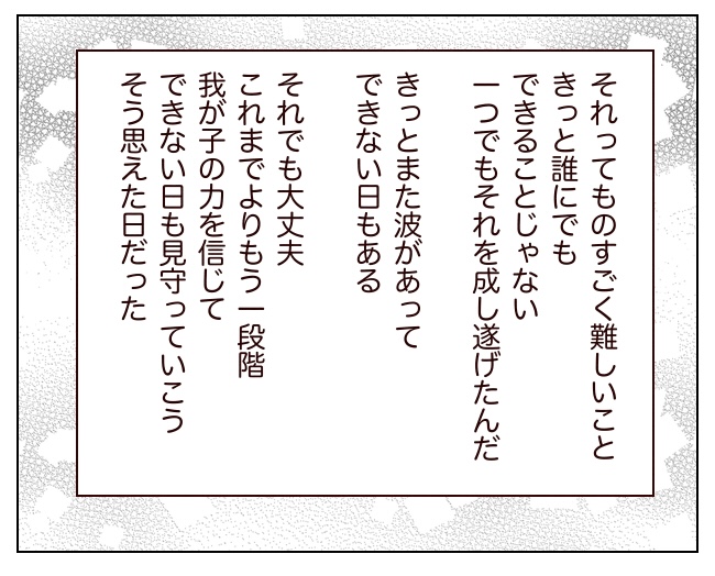 嬉しいことに担任の先生からも、これまでギャン泣きしてたような場面でもちょい泣きかまぁいいかと流せる場面が増えたとお声がけいただき🥹