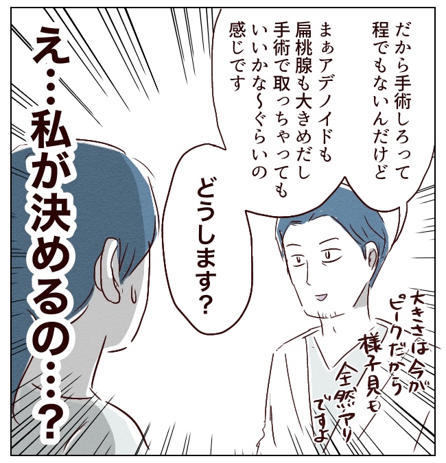 ちなみに医師としてはアデノイド、扁桃腺をとる手術はしない方が若干オススメという感じでした。