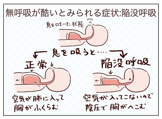 なお陥没呼吸については医師に診断されたわけじゃないので、これが本当に陥没呼吸とまで言えるのかはわかりません。