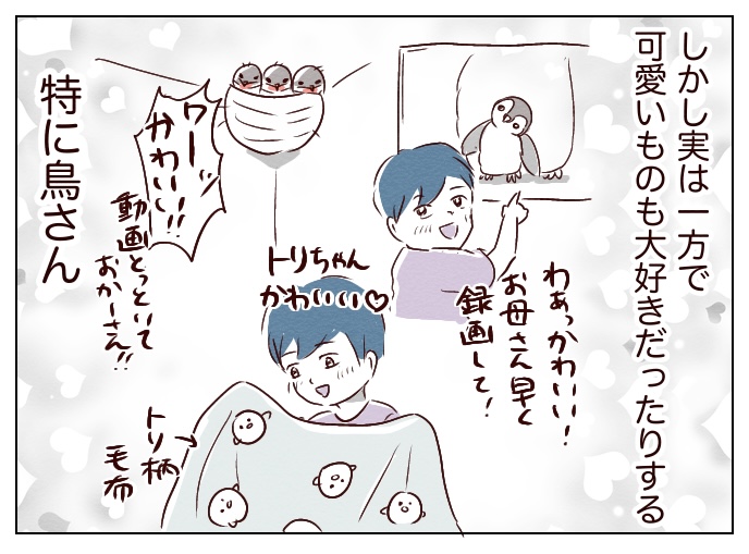 私もそう思ってて、ケロきちが3、4歳の頃に赤ちゃんだった弟を全く愛でなかったので「やっぱり可愛いものを愛でる心がないんだ…」と悲しく思っていました。