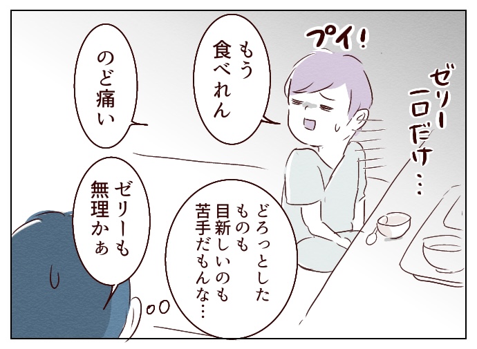 まだ喉が痛いと言ってたけど、痛み止めを飲めるようになってから24時間半泣きってほどではなく、暇な時間はYoutube見たりゲームしたり漫画読んだりして過ごせました。