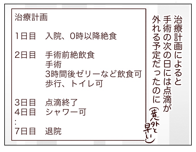 私5日間ぐらいは点滴すると思ってたんですが、手術の次の日には取れるって早くない?