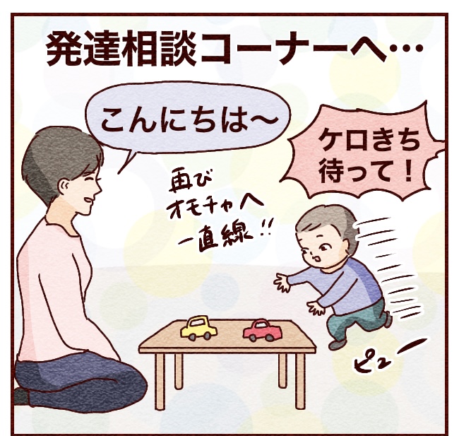 実は発達遅くて心配してて…と切り出すと、すぐに別室の相談コーナー(臨床心理士さんがいる)を案内してくれました。