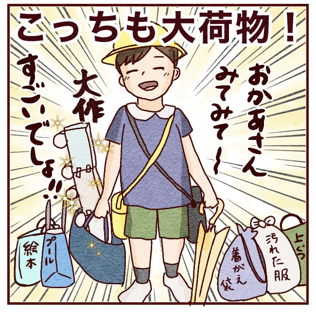 ちなみにこの図は「週末+服が汚れた+水遊び(夏は毎日)+大作+雨」が重なった不幸な日ではあるけど、毎日近い量の荷物です。